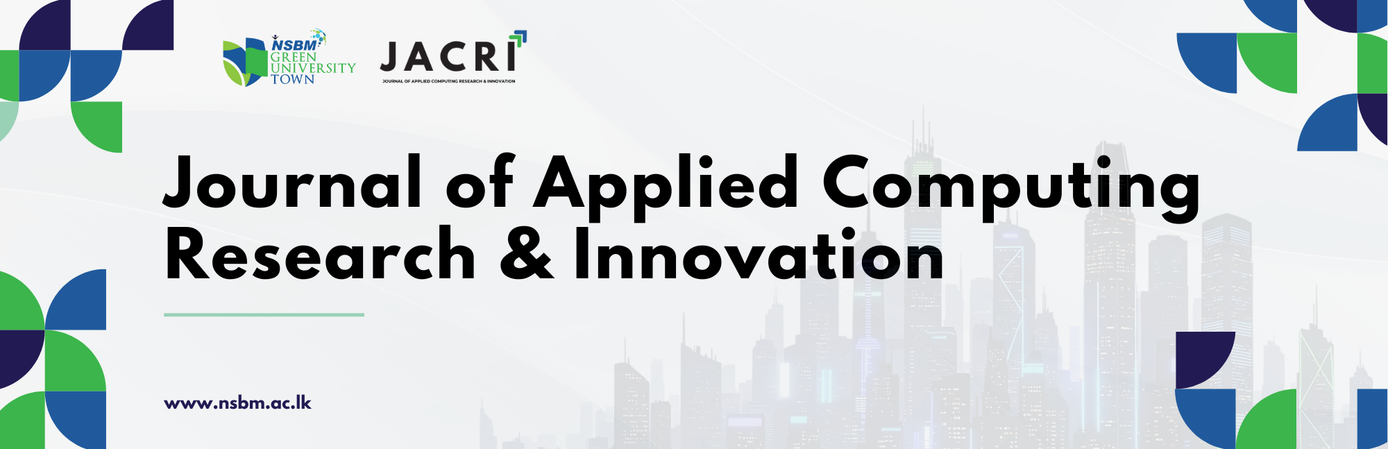 The Journal of Applied Computing Research and Innovation (JACRI) is a double-blind peer-reviewed academic journal published by the Faculty of Computing at NSBM Green University. JACRI provides a scholarly platform for disseminating high-quality research that advances theory, practice, and innovation in applied computing disciplines.